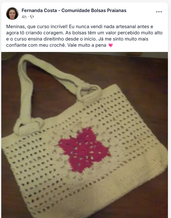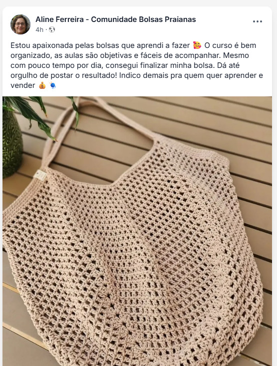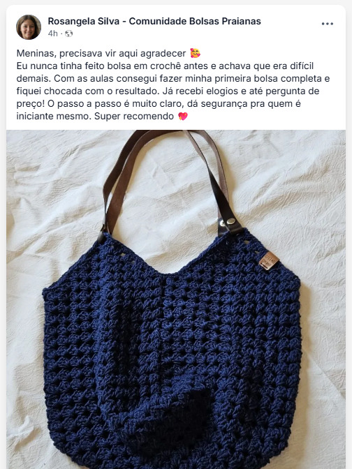 Rosana Oliveira é especialista em bolsas praianas de crochê há mais de 7 anos.