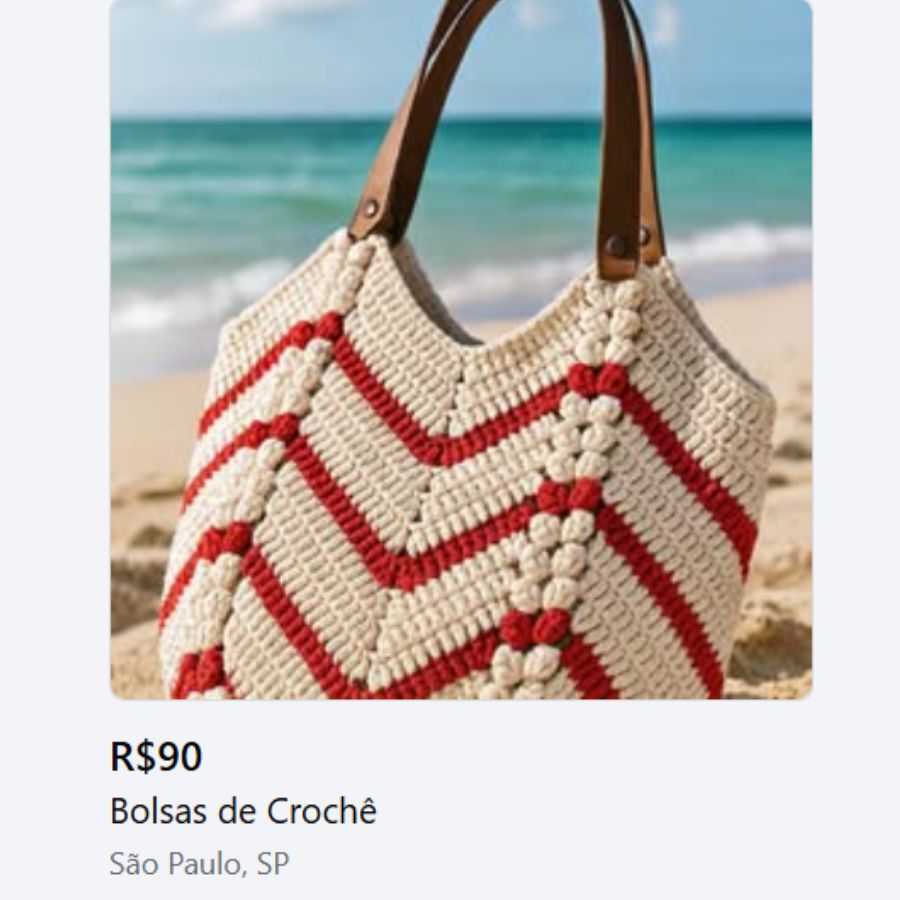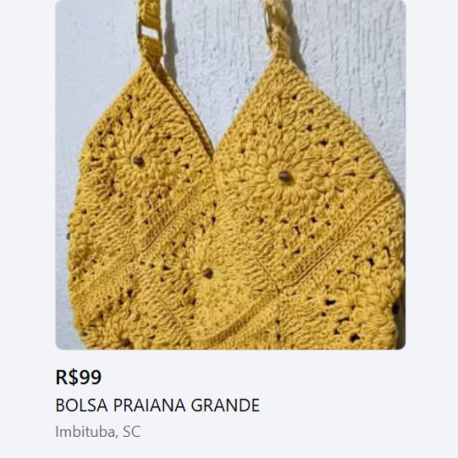Bolsas praianas artesanais são vendidas diariamente por valores entre R$89,00 a R$249,00, dependendo do modelo, acabamento e materiais.