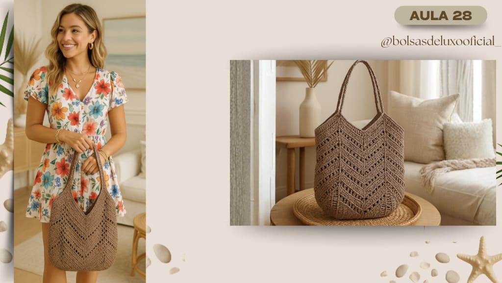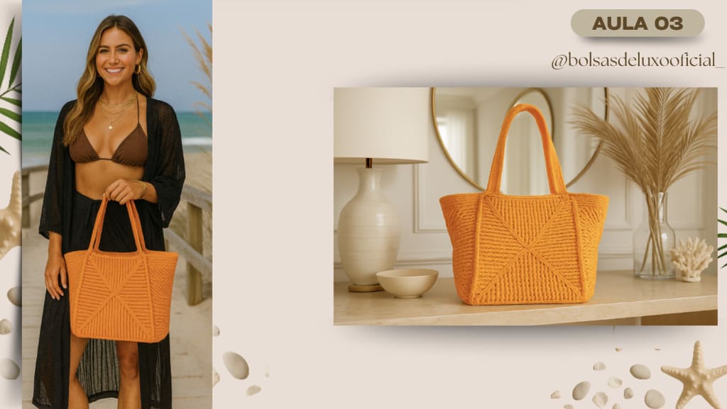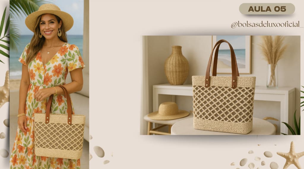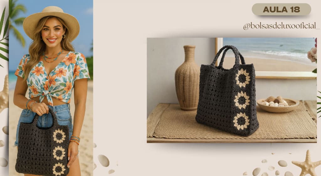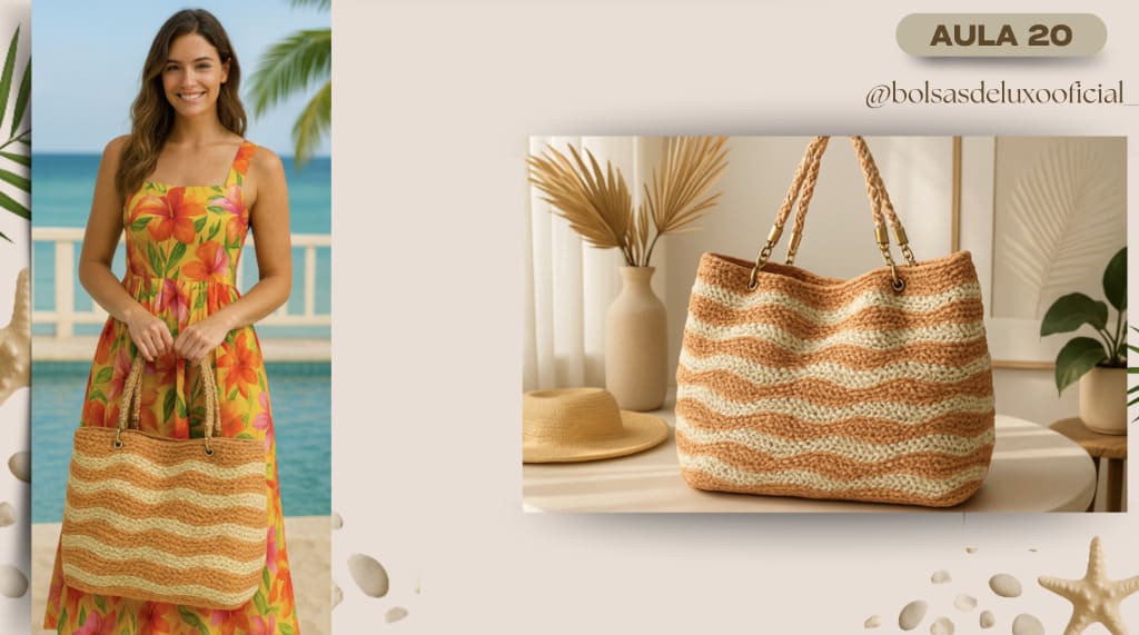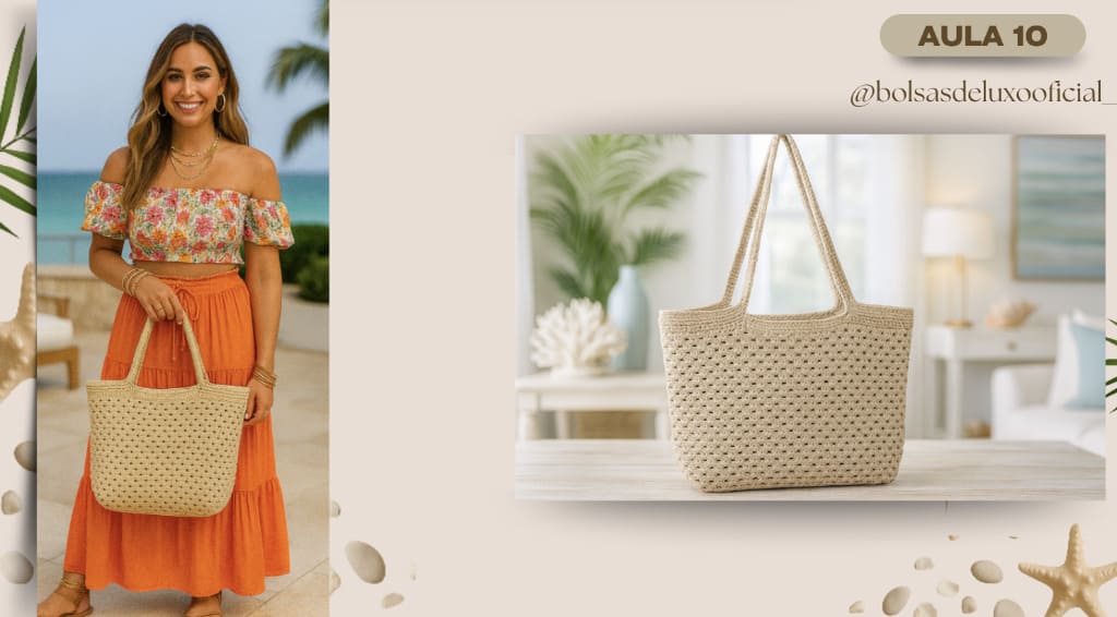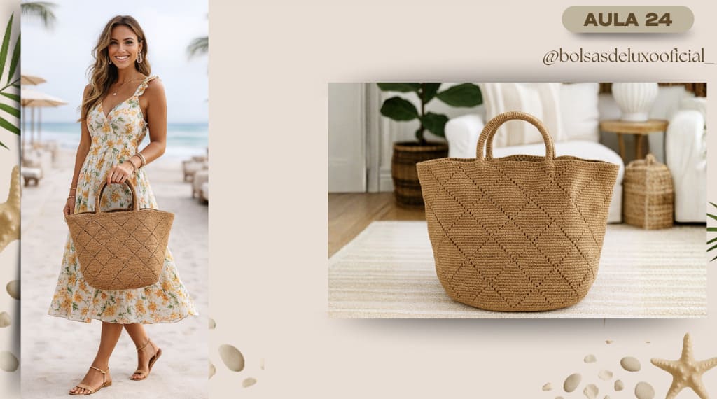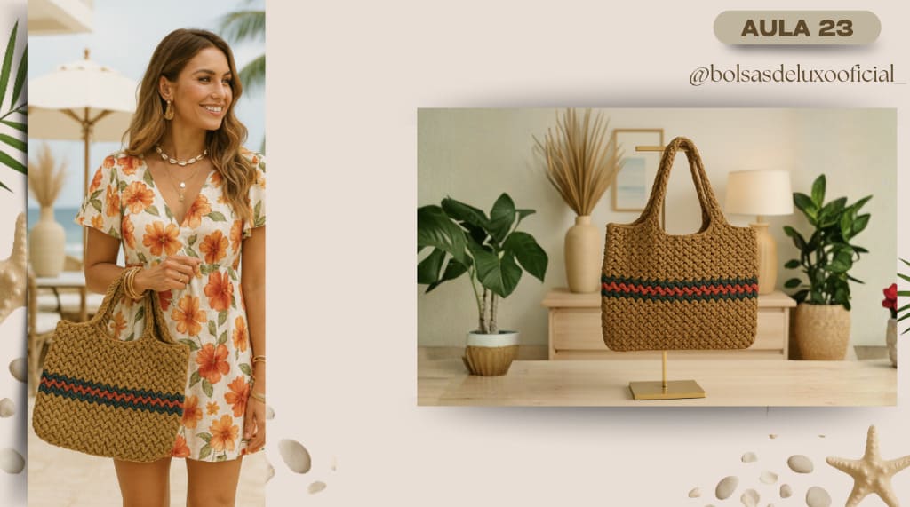 Aprenda a criar bolsas praianas em crochê modernas, desejadas e com alto valor de venda.