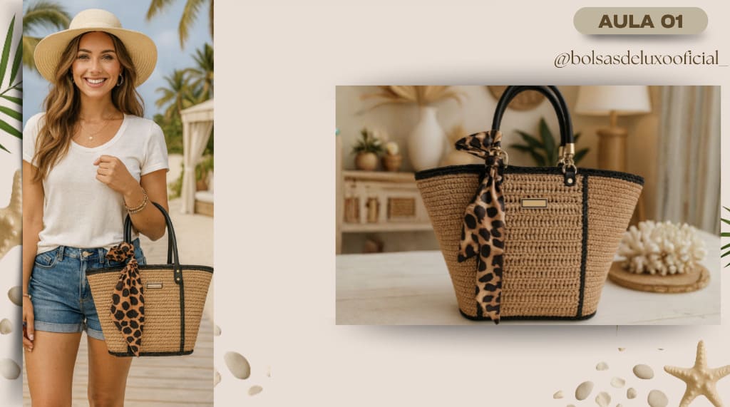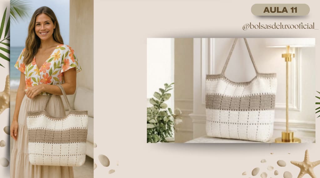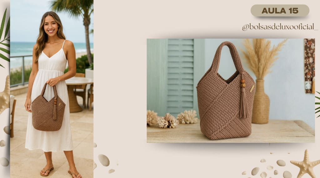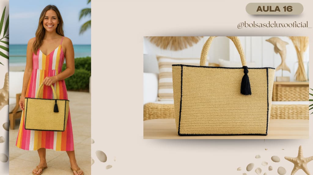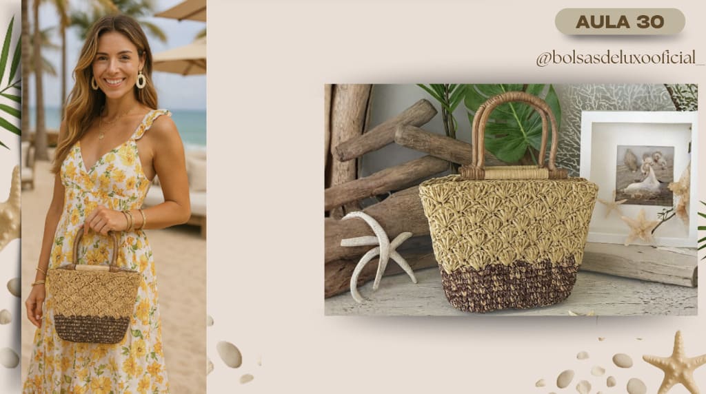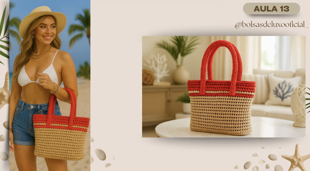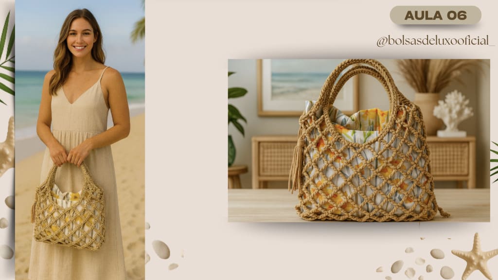 Aprenda a criar bolsas praianas em crochê modernas, desejadas e com alto valor de venda.