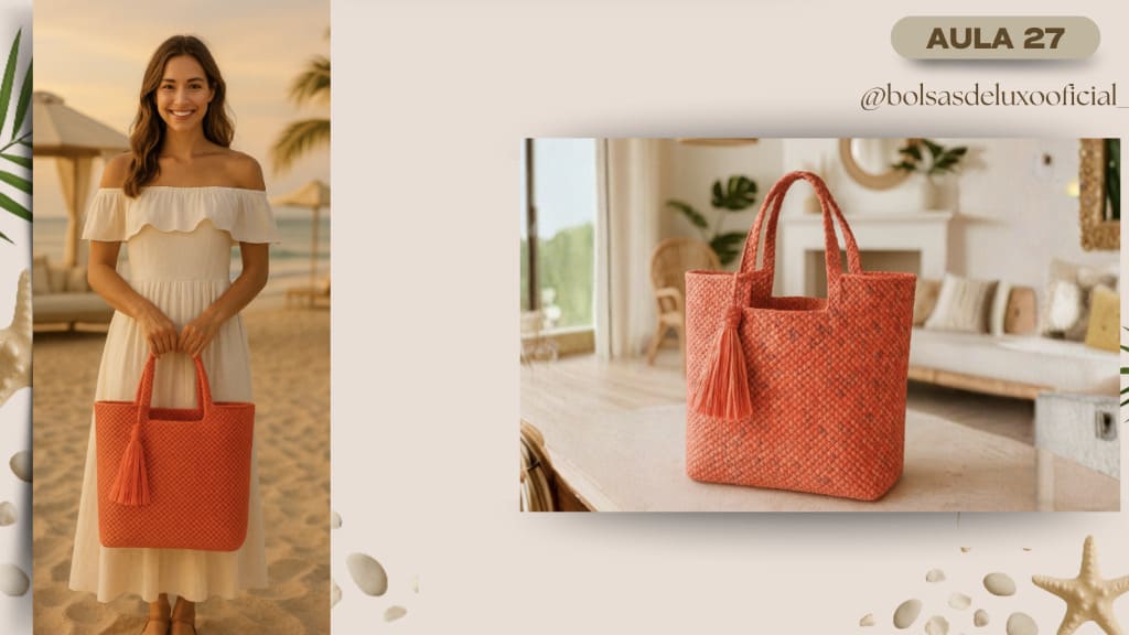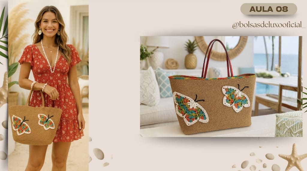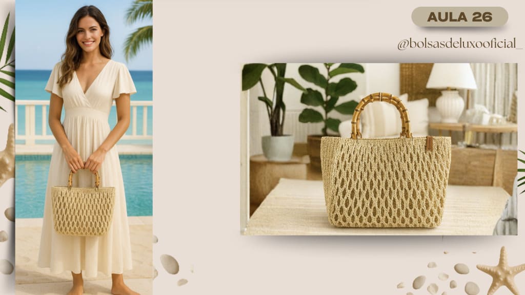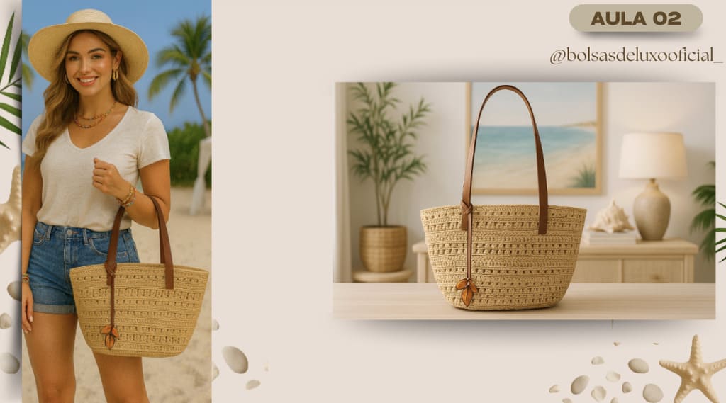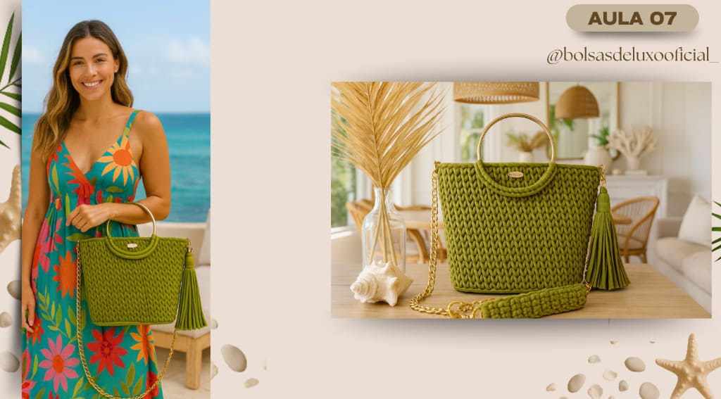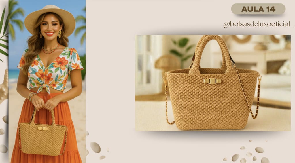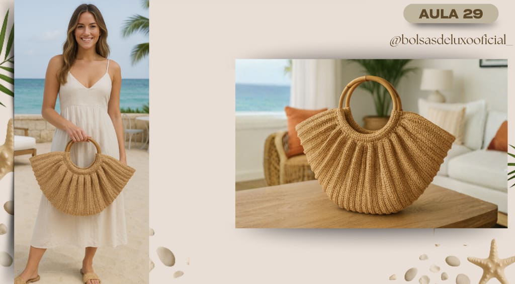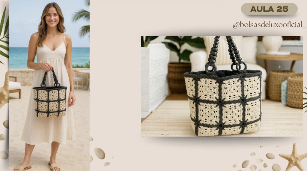 Aprenda a criar bolsas praianas em crochê modernas, desejadas e com alto valor de venda.
